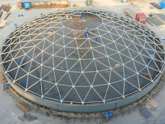 與平板網(wǎng)架相比,網(wǎng)殼的受力性能好,剛度大,自重小,用鋼量省,是適用于中、大跨度建筑屋蓋的一種較好的結(jié)構(gòu)型式。 網(wǎng)殼結(jié)構(gòu)常見(jiàn)型式有圓柱面網(wǎng)殼、圓球網(wǎng)殼和雙曲拋物面網(wǎng)殼。